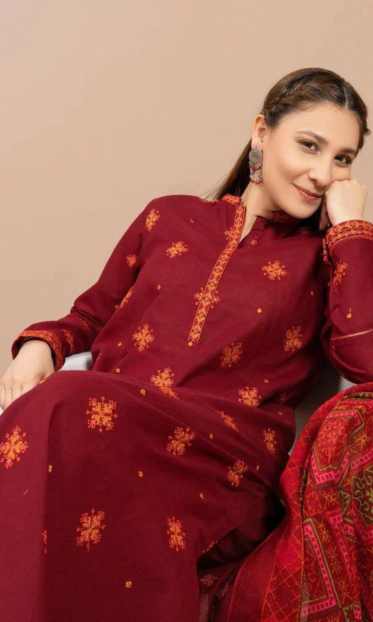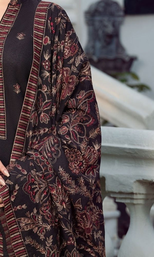 Dhanak 3pc unstitched heavy embroidered shirt with wool digital printed dupatta