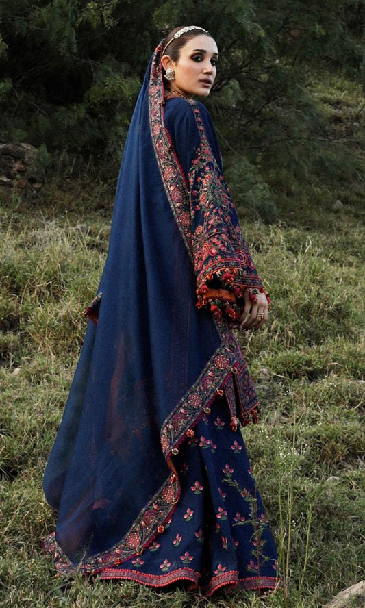 Dhanak 3pc heavy embroidered shirt with wool digital printed shawl