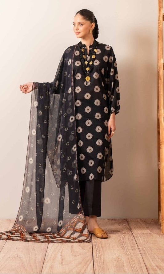 Baroque Unstitched 3pc digital printed suit with same printed shawl