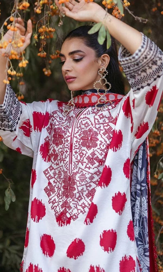 Lawn 3pc fully embroidered suit with poly lawn digital printed shawl