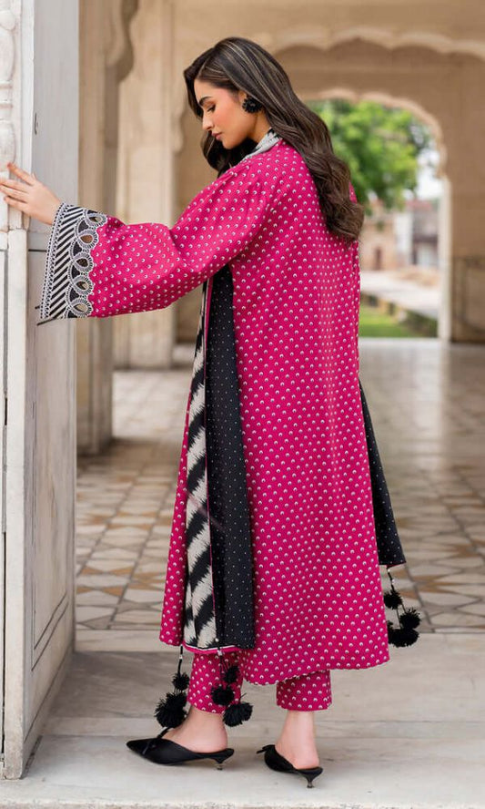 Lawn 3pc digital printed suit with bamber shaffon embroidered dupatta