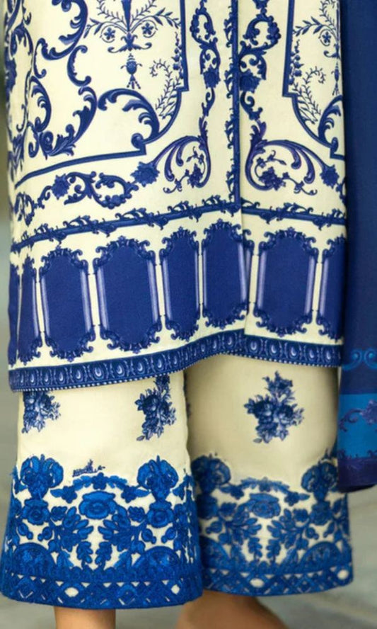 Lawn 3pc unstitched digital printed suit with embroidered patches