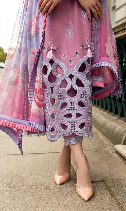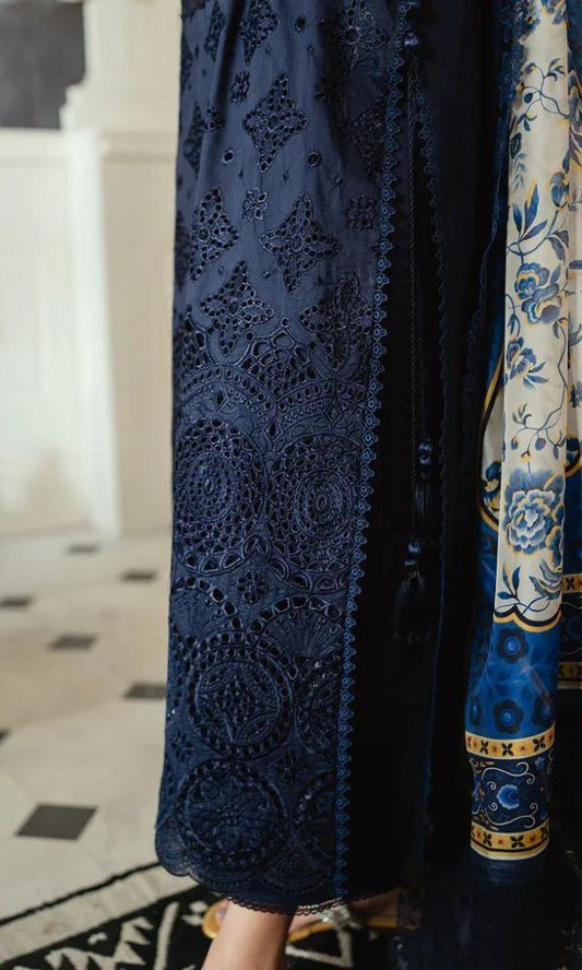 Lawn 3pc unstitched heavy embroidered suit with embroidered laces