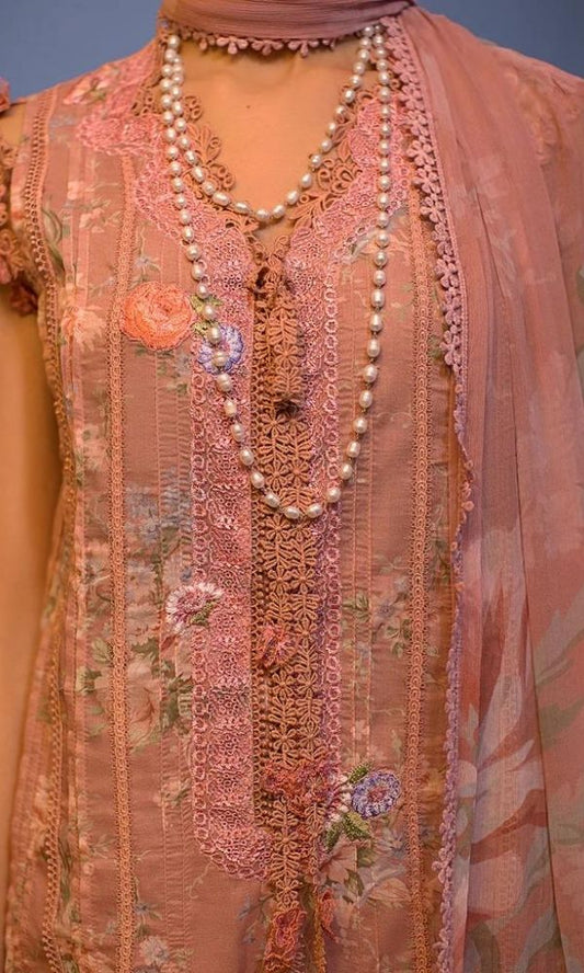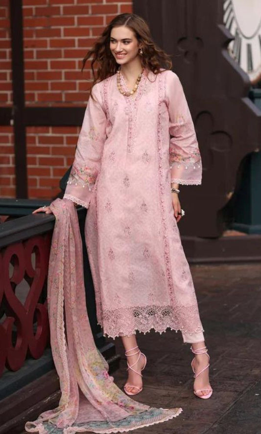 Lawn 3pc heavy embroidered and digital printed suit