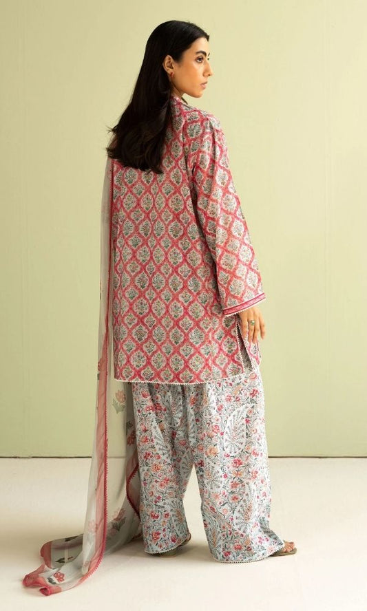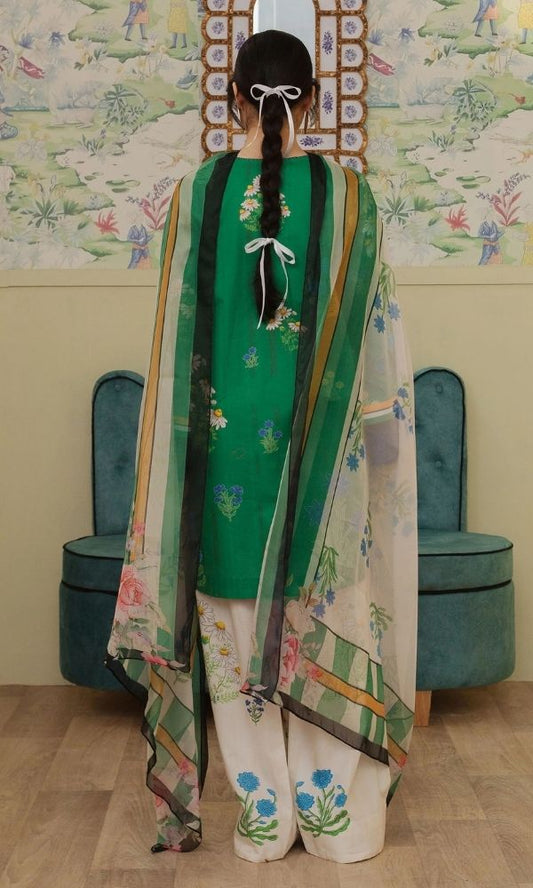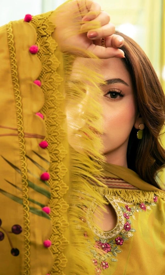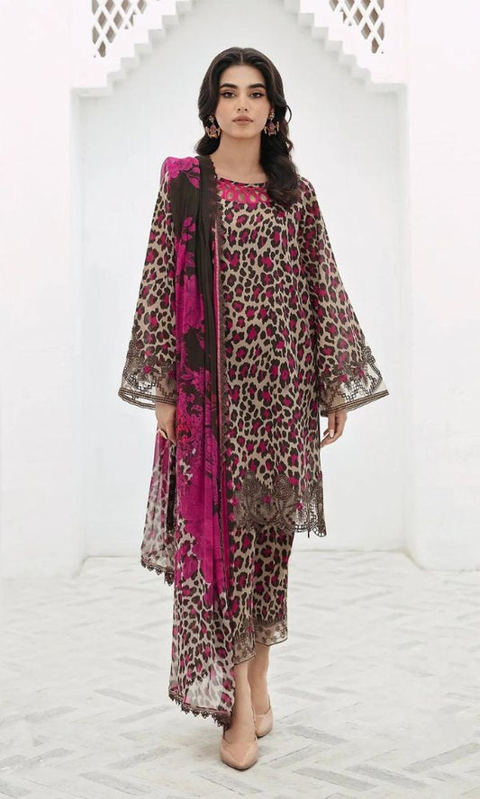 Lawn 3pc heavy embroidered suit with embroidered dupatta
