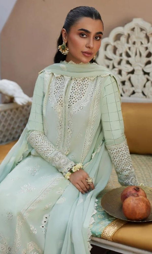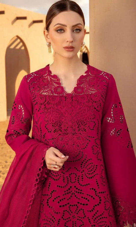 Lawn 3pc heavy embroidered chiken kari suit with pallu cutwork dupatta