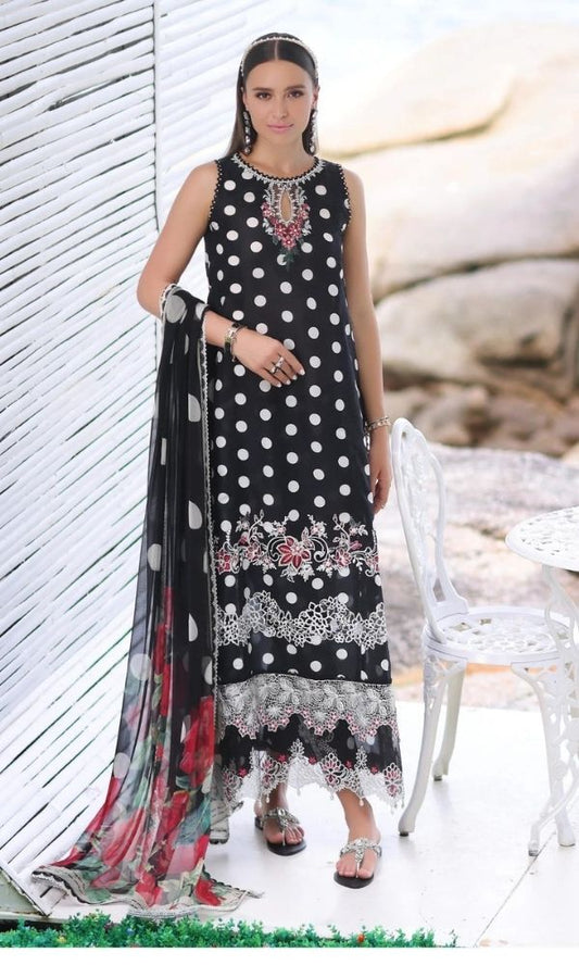 Lawn unstitched 3c heavy Embroidered suit with silk dupatta