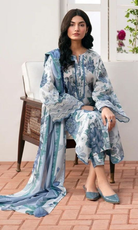 Lawn 3pc digital printed suit with bamber shaffon embroidered dupatta