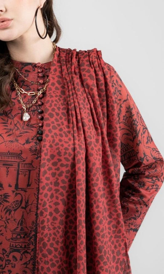 Lawn 3pc chiken kari embroidered suit with monar printed dupatta