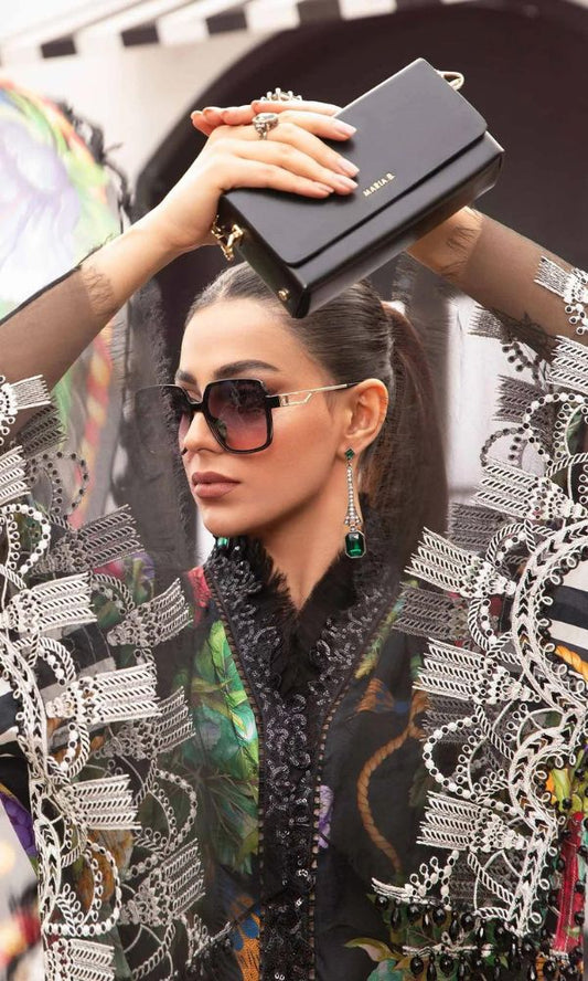 Lawn 3pc unstitched digital printed suit with embroidered patches