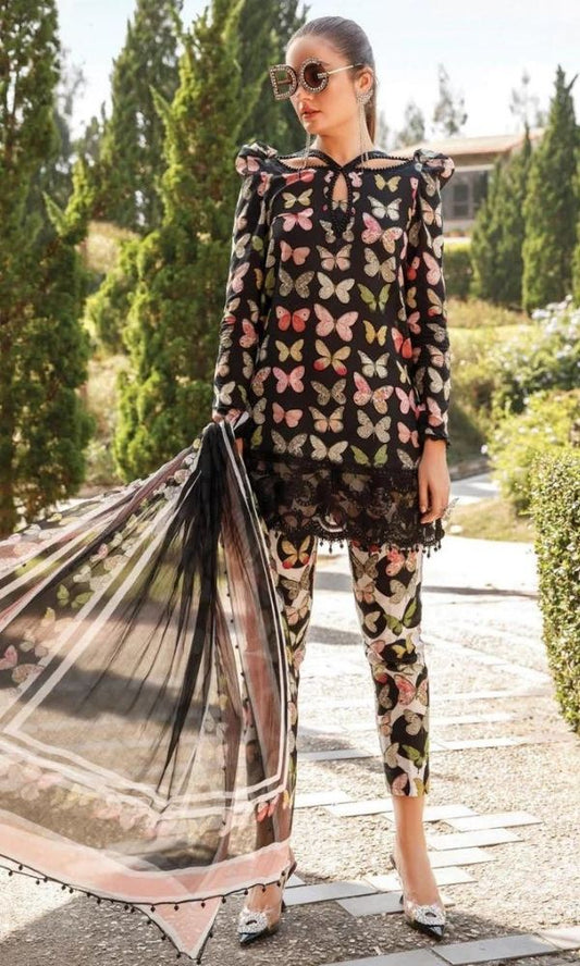 Lawn 3pc digital printed suit with monar digital printed dupatta