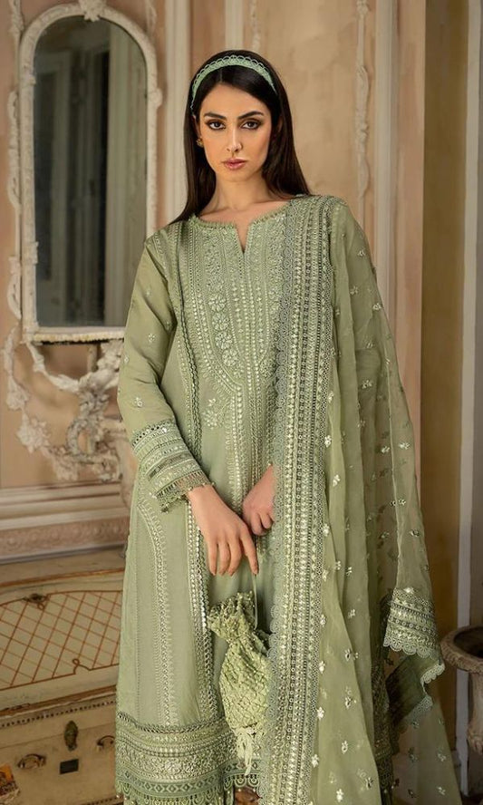 Lawn 3pc fully embroidered suit with 4 sided embroidered dupatta