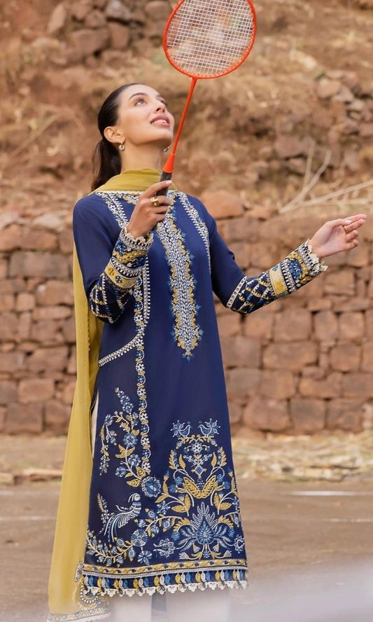 Lawn 3pc heavy embroidered suit with digital printed dupatta and trouser patches