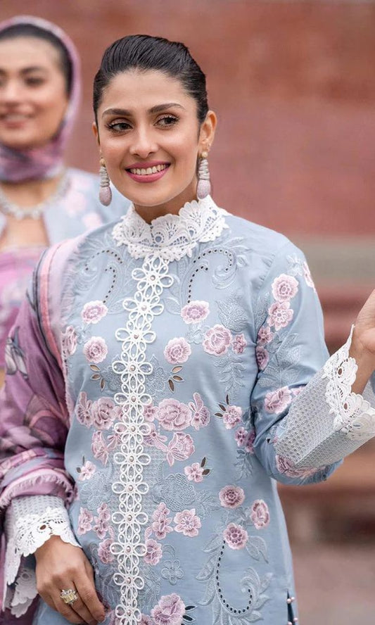 Lawn 3pc unstitched embroidered suit with embroidered dupatta