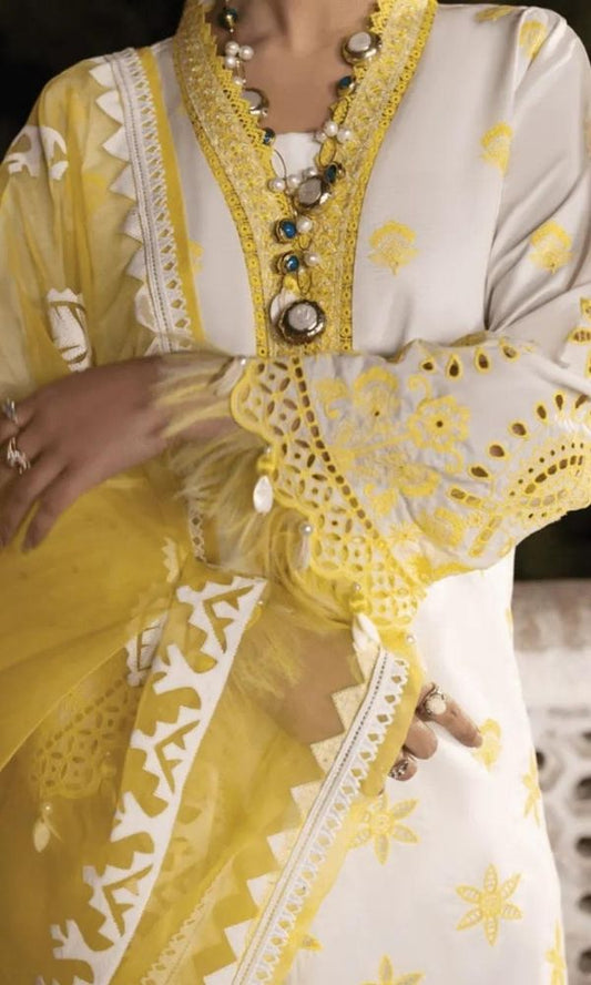 Lawn 3pc unstitched embroidered suit with patches and embroidered dupatta