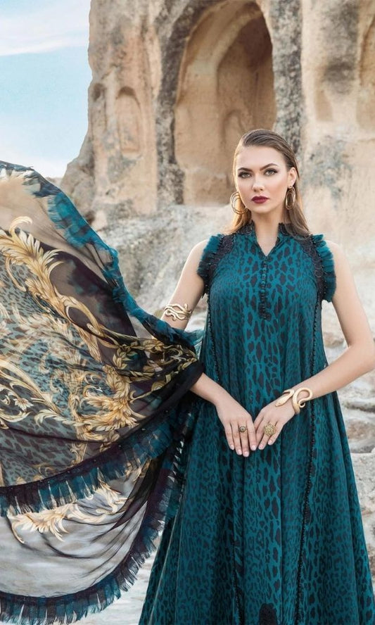 Lawn 3pc digital printed suit with patches and silk dupatta