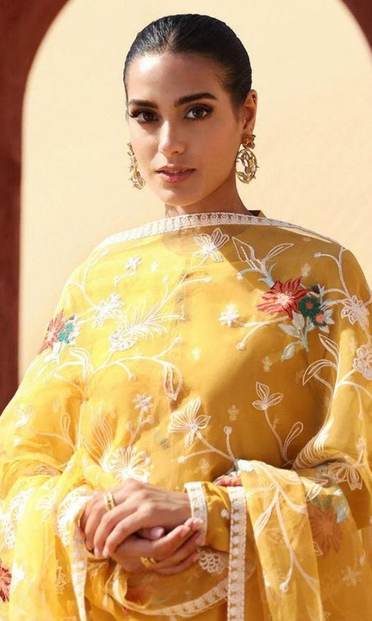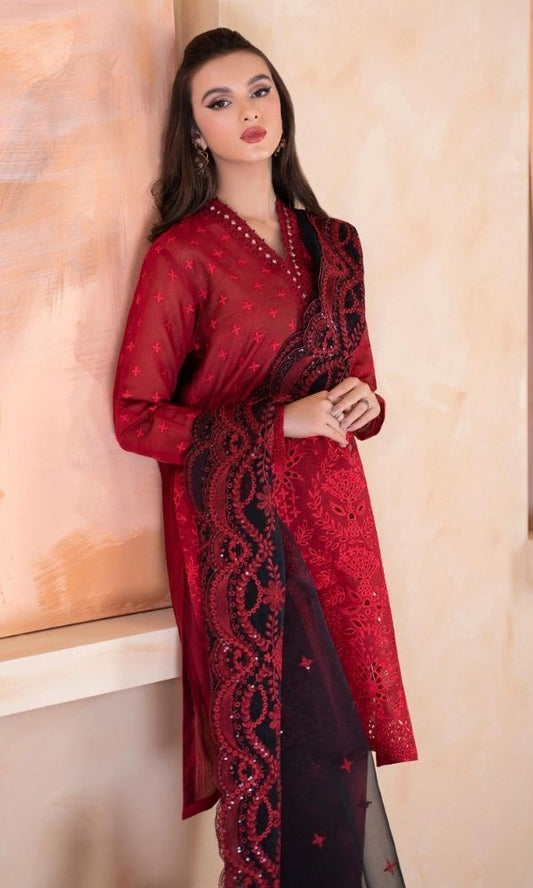 Lawn 3pc heavy chiken kari sequence embroidered suit
