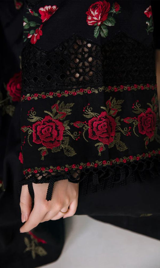 Winter collection 3pc embroidered suit with embroidered trouser and embroidered shawl
