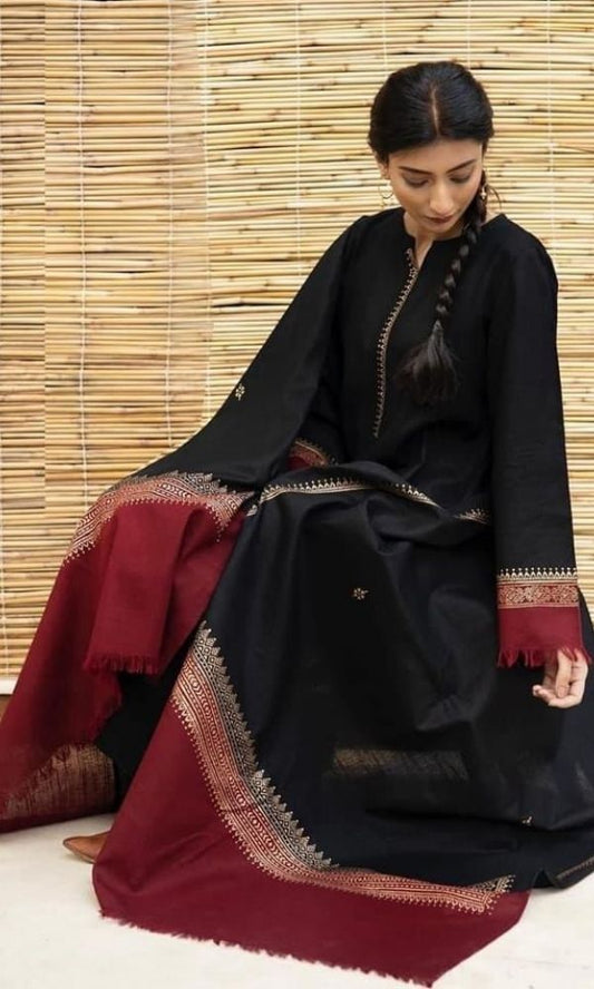 Best Quality Dhanak 3pc unstitched shirt heavy embroidered shawl