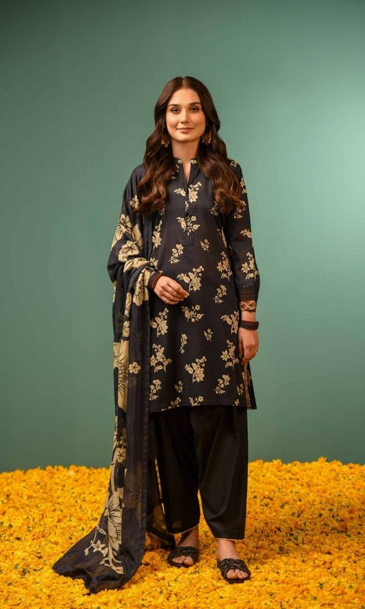 Dhanak 3pc unstitched fully embroidered suit with digital printed wool shawl
