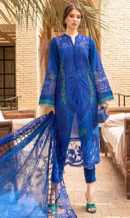 Lawn 3pc fully embroidered suit with 4 sided embroidered dupatta