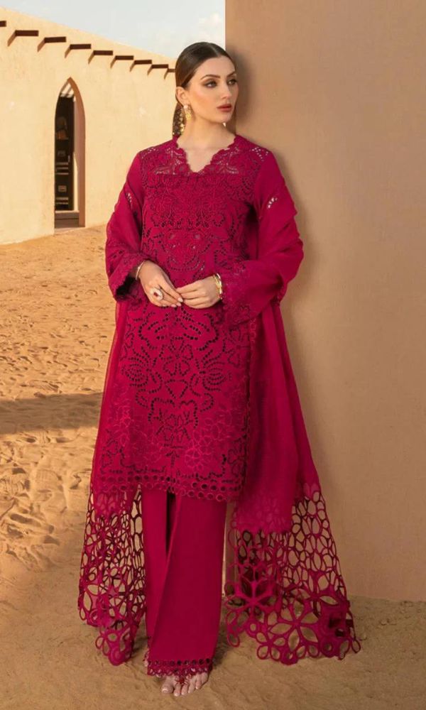 Lawn 3pc heavy embroidered chiken kari suit with pallu cutwork dupatta