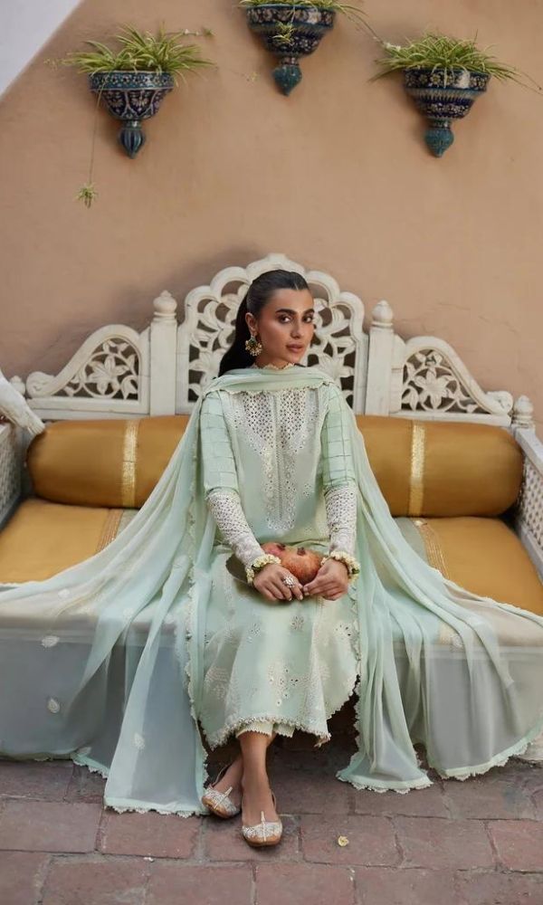 Lawn 3pc heavy embroidered suit with embroidered dupatta
