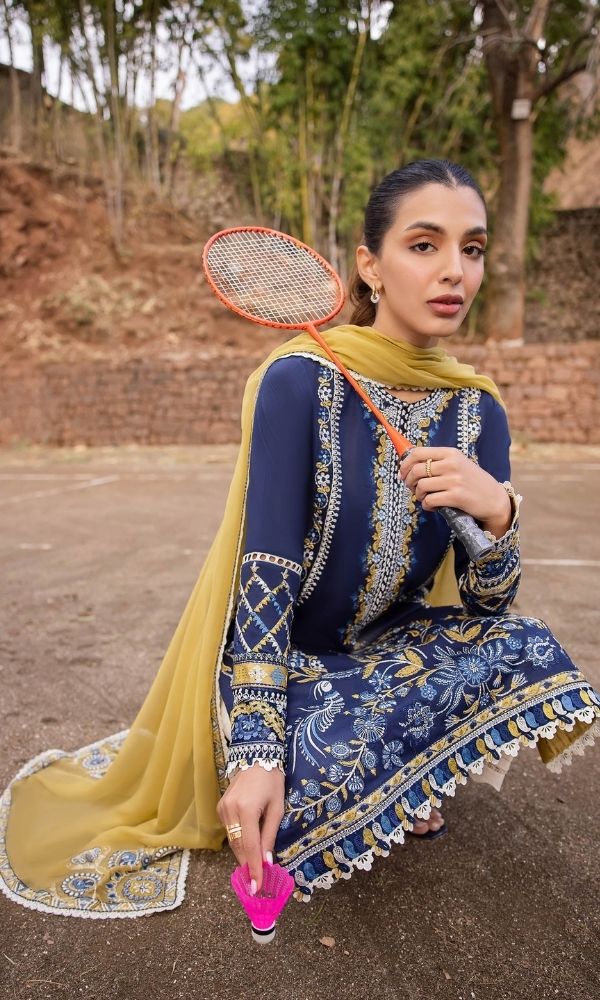 Lawn 3pc heavy embroidered suit with embroidered dupatta and motifs
