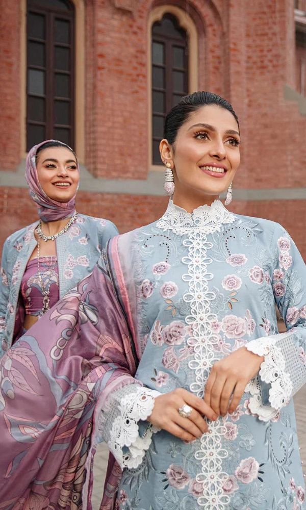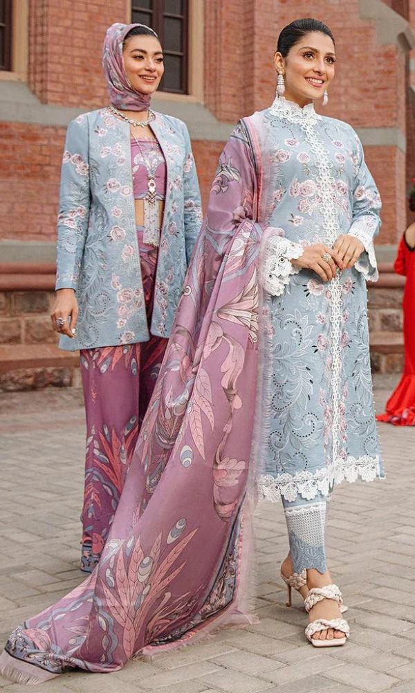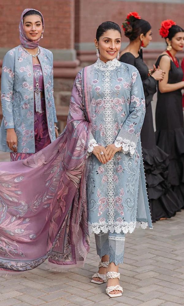 Lawn 3pc heavy embroidered suit with silk printed dupatta