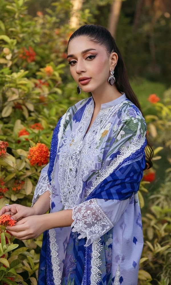 Lawn 3pc unstitched digital printed embroidered suit with embroidered patches