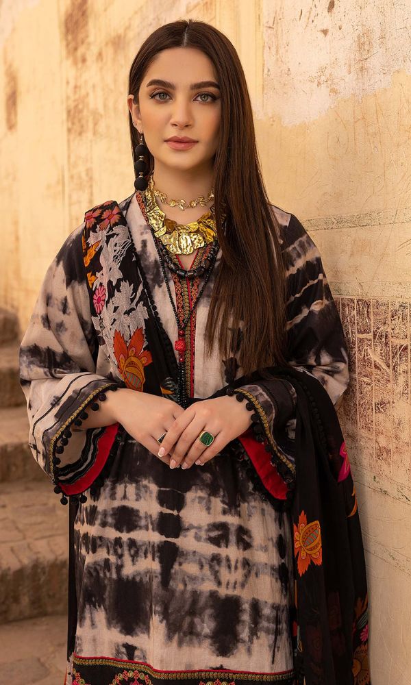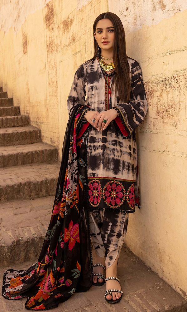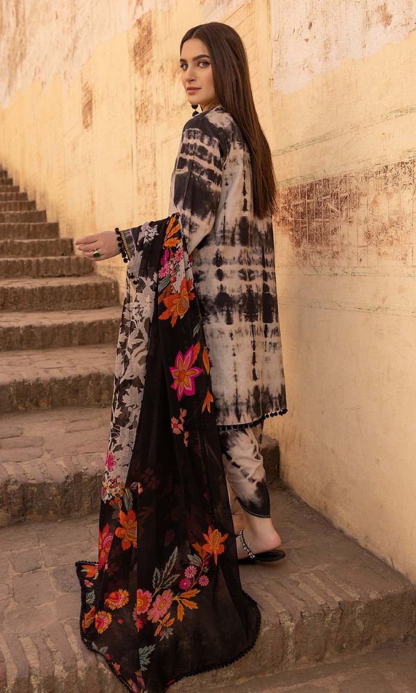Lawn 3pc unstitched digital printed suit with voil printed dupatta