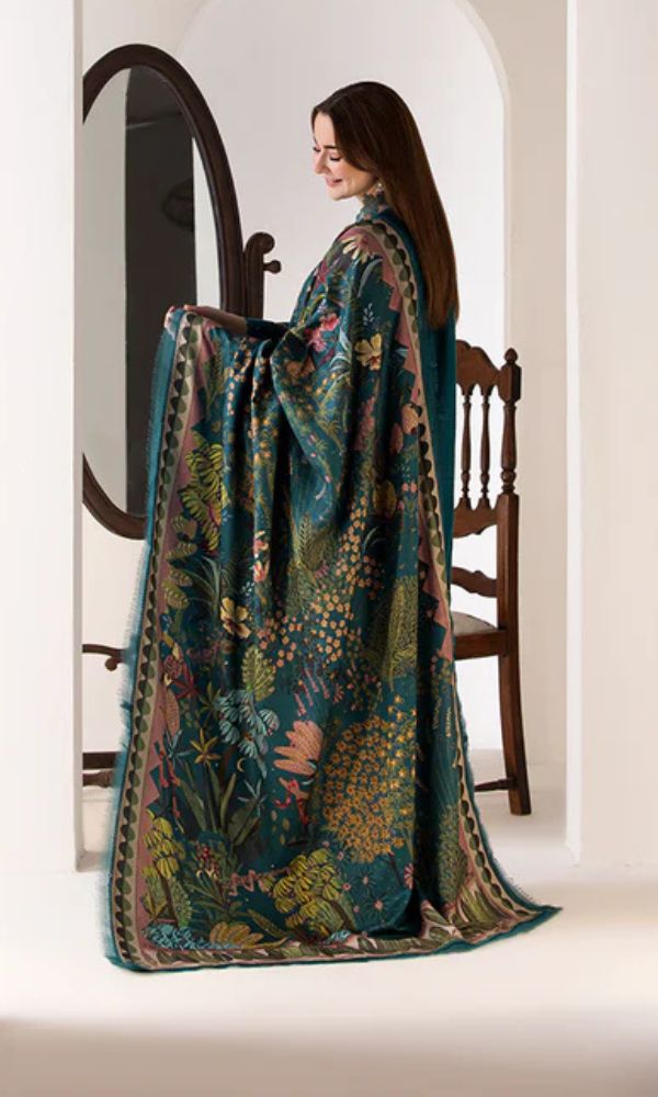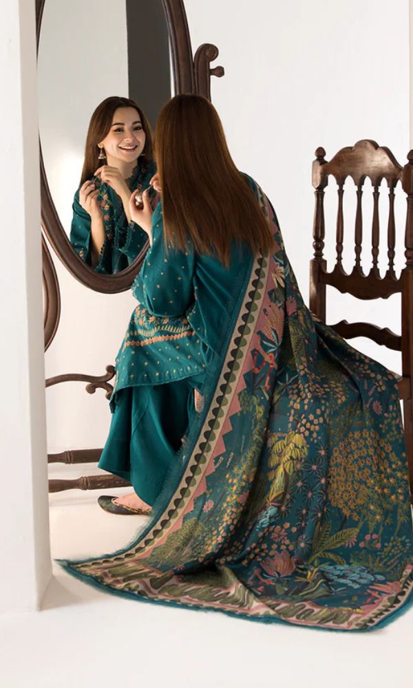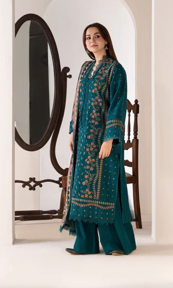 Lawn 3pc unstitched heavy embroidered suit with poly lawn digital printed dupatta